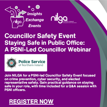 NILGA is inviting all NI councillors to a PSNI–led Councillor Safety Event, focusing on practical guidance to help you stay safe in public office.
