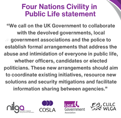 The four nations stand united in tackling abusive behaviour, countering disinformation, and supporting councils and councillors so they can continue to serve their communities with confidence and dignity.